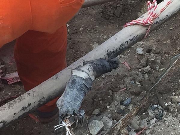 2017715日上午839,曠遠能源管網部巡線員謝海陽在對華林工業園區支四路巡線過程中,發現空氣中彌漫著一股臭味,多年從業經驗使他立刻引起警覺,通過手持式可燃氣體檢漏儀確定了該區段存在燃氣泄漏。他立即對現場進行警戒,并及時上報管網部經理林元琦。林元琦考慮事故隱患重大,影響范圍廣,立即上報公司領導并啟動應急預案。曠遠能源客服部、調度監控中心、工程管理中心、宏盛市政工程有限公司等多方迅速聯動。管網部經理林元琦第一時間組織力量趕赴現場處理,他憑借多年的管網應急處理經驗,迅速鎖定漏氣區段,通過取點檢測分析,準確地找出了管線漏點。頂著烈日冒著酷暑,為了及時恢復供氣,曠遠能源管網部和宏盛市政的應急搶修人員爭分奪秒進行搶修。當天下午1718分,更換管段焊接完畢;1758分,冷卻側漏后恢復供氣。