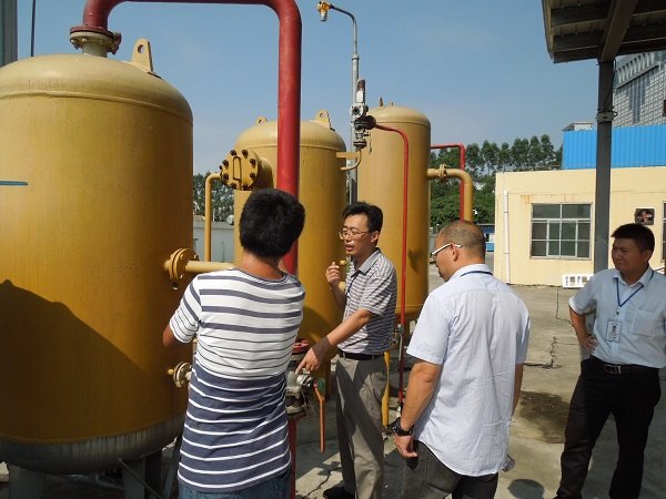 2014年9月23、24日,安全檢查小組在能源事業部副總經理蘭書彬的組織帶領下,對荔園加氣站、氣源廠、福廈路管線、仙游分公司所轄管線以及十來家餐飲場所等進行全面檢查。本次檢查工作的重心落在溝渠、管線薄弱處是否存在泄露點或安全隱患以及餐飲業的安全用氣問題上,安全檢查小組分別對燃氣的儲存、運輸、配送、使用以及鋼瓶的生產、檢測、回收、報廢等各個環節一一進行了排查。