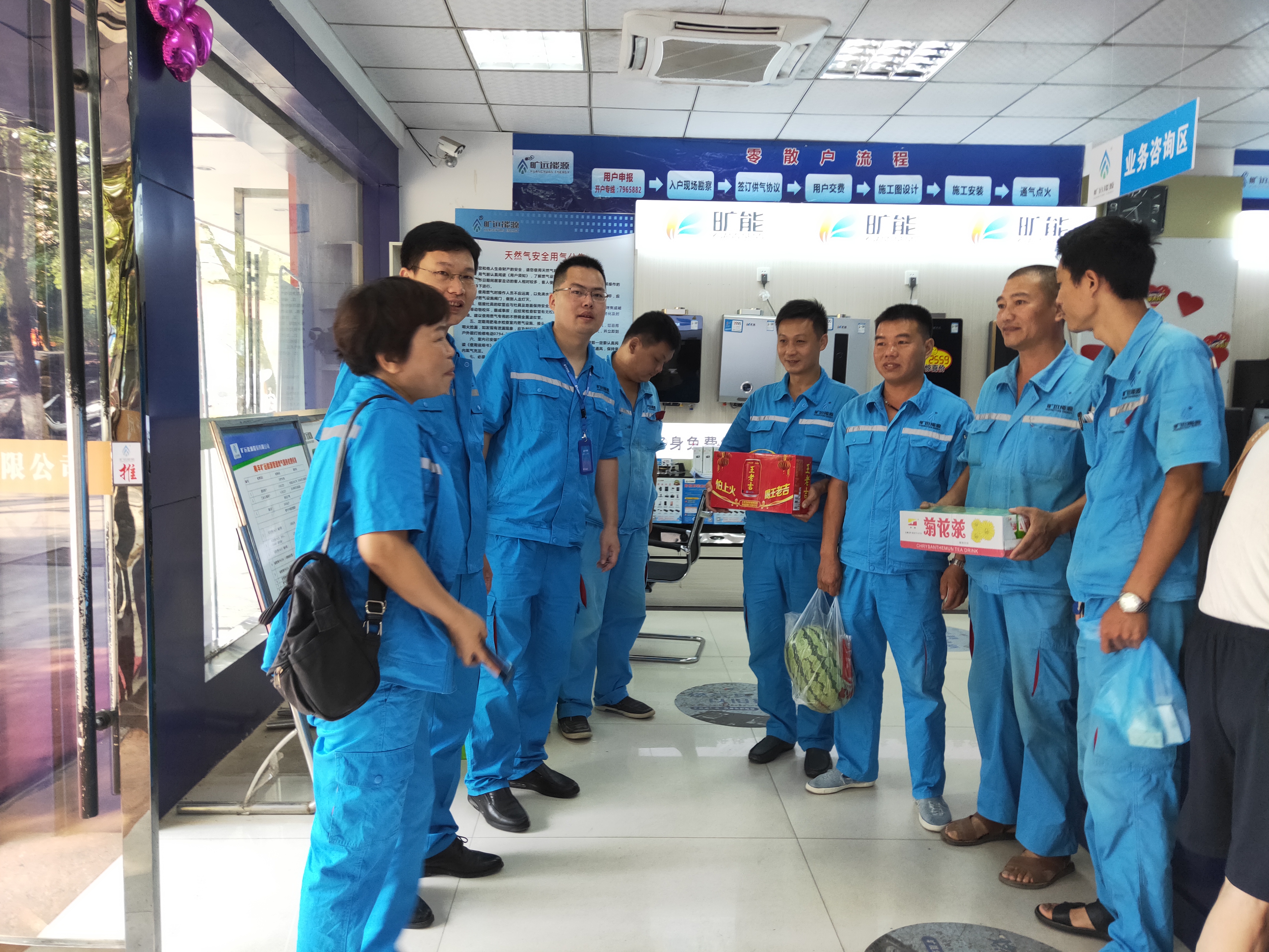 連日來,氣溫節節攀升,酷暑考驗著堅守在一線工作的員工。7月24日下午,上杭曠遠能源有限公司總經理郭明亮、副總經理姚東亮等一行來到上杭營業廳、氣站、施工現場等,親切看望慰問我司一線員工,詢問他們在高溫天氣下的工作情況,并代表集團公司對一線員工高溫下堅守崗位、辛勤勞作的精神表示感謝,叮囑員工在當前持續高溫的不利條件下,安全做好工作的同時,要注意休息、勞逸結合,采取有效的防暑措施、安全順利..
